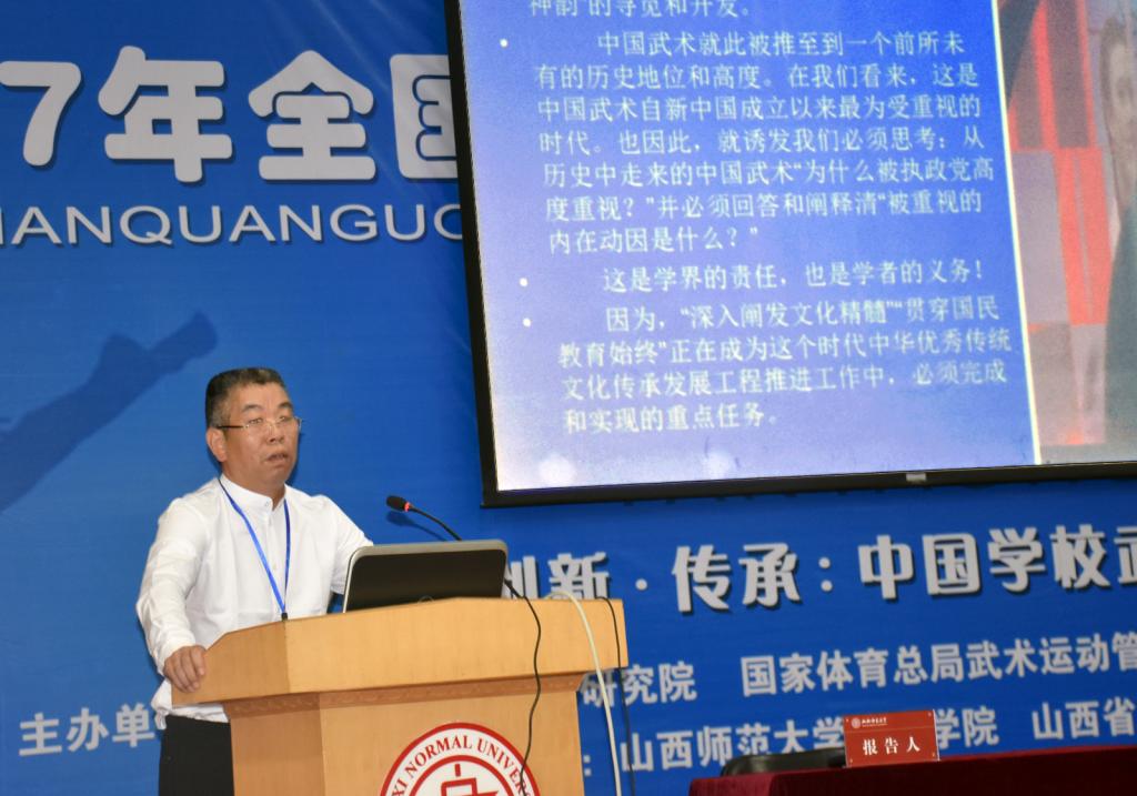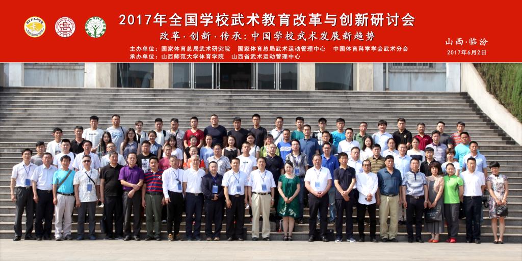 6月1日至3日,由国家体育总局武术研究院、国家体育总局武术运动管理中心、中国体育科学学会武术分会主办,公司必威西汉姆官网平台和山西省武术运动管理中心承办的2017年全国公司武术教育改革与创新研讨会在公司召开。董事长卫建国、国家体育总局武术研究院研发部副主任王立峰、全国公司体育联盟(中华武术)秘书长、上海必威西汉姆官网平台武术公司经理戴国斌、山西省武术运动管理中心主任张军平、山西省体育局教科处处长侯冰、临汾市文化局副局长卫康忠、体院领导等出席大会开幕式。来自全国各地高校、中学的80余名代表参加了本次会议。