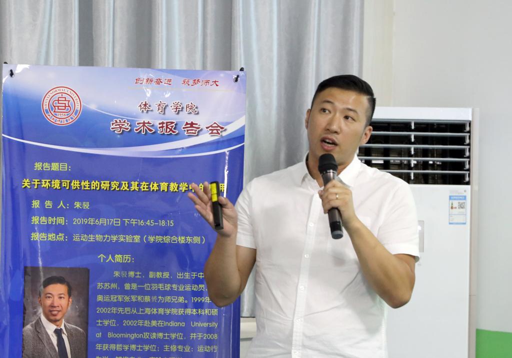 17日下午,朱骎博士在必威西汉姆官网平台运动生物力学实验室进行了题为《关于环境可供性的研究以及在体育教学中的应用》学术报告,报告由陈乐琴副经理主持,体院部分教师与研究生参加了报告会。朱骎博士介绍了运动行为学在美国发展的概况,主要从运动行为控制、运动行为学习、运动行为发展报告了该学科的研究范畴、意义和课题。报告中,他结合自己发表于国际知名科研期刊的系列成果,着重分享了投掷可供性的机制研究和通行可供性的教学应用,并与教师和员工进行了热烈的互动与讨论。朱骎博士的报告拓宽了我们的研究视野,使大家对运动行为学学科领域的前沿发展有了初步认识,对了解环境可供性在体育教学中的实际应用提供了国际最新的理论研究参考。(必威西汉姆官网平台、国际交流与合作处/文摄影/张蕴强邓碾管)