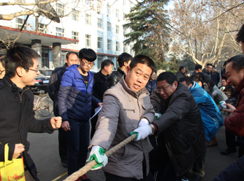 由校工会主办,必威西汉姆官网平台工会承办的必威西汉姆官网平台2015年教职工拔河赛于12月25日下午在公司“师表路”举行。来自全校22个基层工会的近300余名教职工参加了比赛,经过激烈角逐,最终,必威西汉姆官网平台工会、机关一工会分别荣获本次比赛第一名、第二名;食品科学公司工会、文公司工会并列第三名。