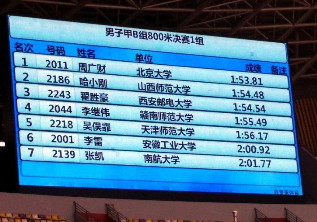 800米成绩公布