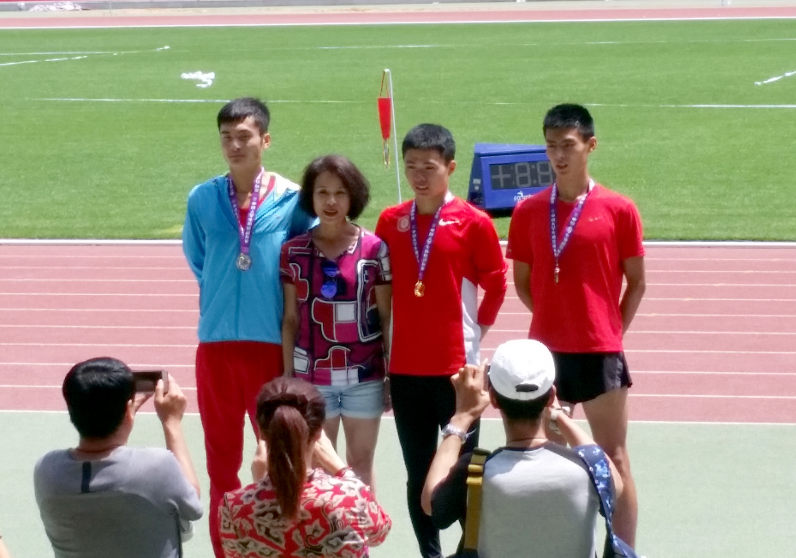 哈小刚同学获得男子甲B组800米银牌(左一)