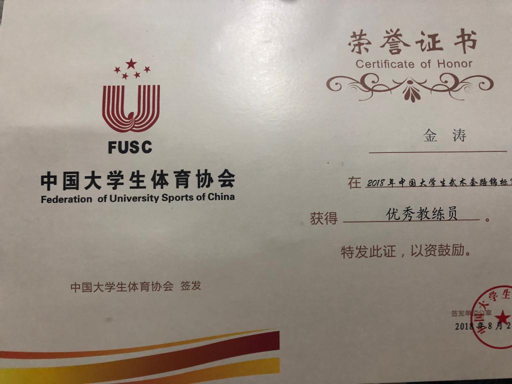 7月28日,2018中国老员工武术锦标赛在湖南工公司隆重举行。来自全国139所高校,149个代表队的1000余名运动员参加了自选拳术、自选器械、其他拳术、其它器械、太极拳、对练项目、太极推手7个大项的比赛,参加比赛高校和运动员数量均达历届之最。公司武术队共选派6名运动员参赛,其中,杜文东同学获得男子甲组软器械冠军、男子甲组华拳冠军;王大伟同学获得男子甲组软器械第三名;杨松林同学获得女子甲组太极拳第三名;付中鹏同学获得男子甲组八卦掌第三名、男子甲组长穗剑第五名;穆治光同学获得男子甲组少林拳第五名、男子甲组剑术第七名;裴超磊同学获得男子甲组南刀第八名。公司武术队荣获“体育道德风尚奖”,金涛老师荣获“优秀教练员”称号。(必威西汉姆官网平台武术队 供稿)