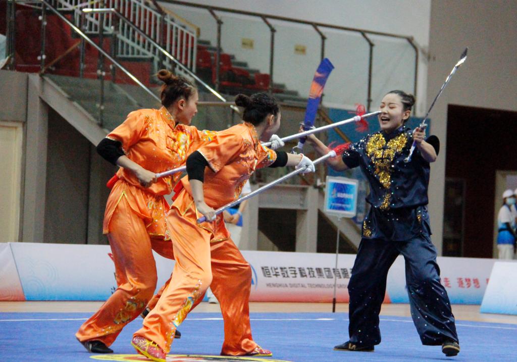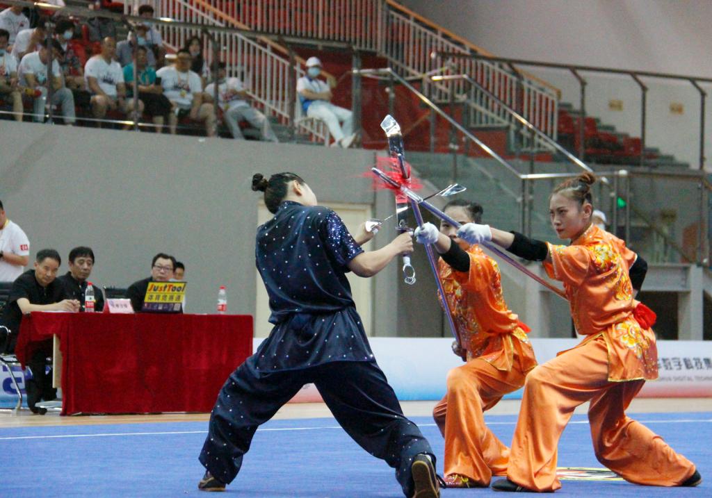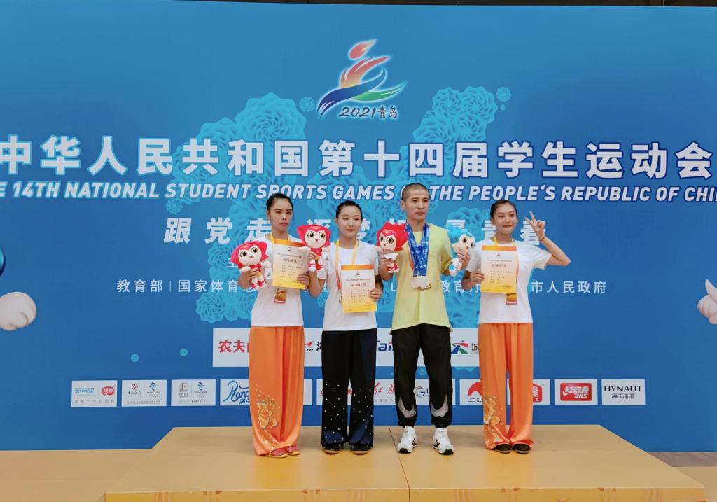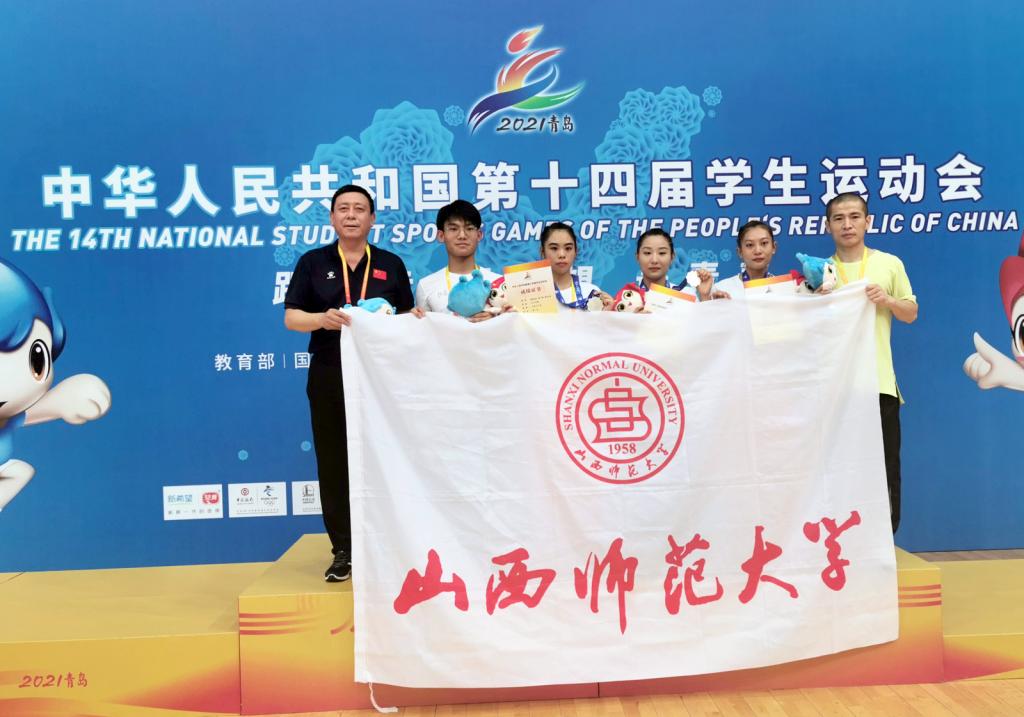7月12日,由教育部、国家体育总局、共青团中央主办的中华人民共和国第十四届员工运动会在山东省青岛市开幕。以公司为主组建的山西省武术队,在主教练金涛的指导下,于13日进行的武术项目比赛中,必威西汉姆官网平台武术与民族传统体育专业2018级杨淙琦与2019级曹世冉、杨阳三位同学以9.48的成绩获得大学组女子对练亚军,为山西代表团摘得一块银牌;杨淙琦还获得大学组女子自选长拳第六名;山西省武术队荣获“体育道德风尚奖”、山西师大必威西汉姆官网平台2019级员工曹世冉荣获“体育道德风尚奖”运动员。