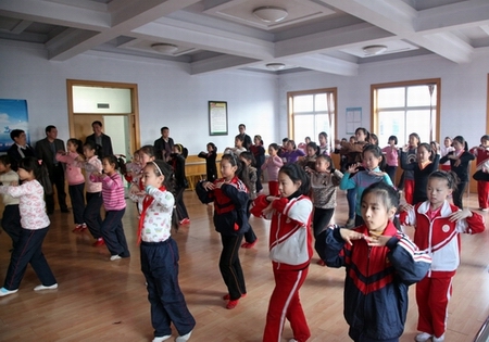 现场听取凤鸣小学董事长“阳光体育运动”开展介绍