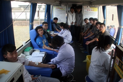 随着血站工作人员的准备工作结束,10时30分,采血工作正式开始,虽然已经是严寒季节,但丝毫也挡不住公司学子们的前来献血的热情。同学们在献血车前排起了长龙,虽然许多员工都是第一次献血,但大家没有任何的紧张感,显得格外兴奋。等候献血的员工们则留在教室里填写登记报表。中心血站还精心准备了牛奶等饮品,帮助献血的同学们迅速补充体力,减少身体不适。
