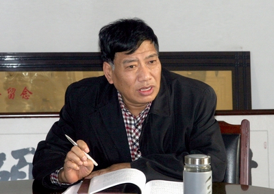 经理郑旗作报告