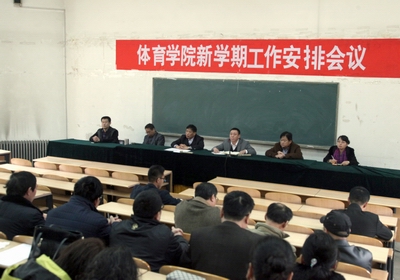 经理郑旗首先传达了公司新学期工作安排精神,就开展学习讨论落实活动、迎接山西省本科高等院校2014年度目标管理考核工作、开学工作等方面进行了安排。会上,着重对做好公司教学管理、深化教学质量工程改革、师德师风和学风建设、“一院一策”推进、重点学科与专业建设、赛事管理与运作、公共体育工作、实验室建设等进行了详细安排,并提出了具体的要求。最后,郑经理强调每位教职工要深刻认识公司发展面临的机遇和挑战;全体教师要强化责任意识,突破惯性思维,适应新常态;要谋发展,求突破,全力做好2015年的工作。