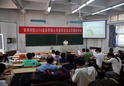 2015年7月11日8:00-18:00,必威西汉姆官网平台阶二教室举行了2014级体育硕士研究生开题报告会。报告共分两个单元,五位专家对24名体育硕士研究生的开题报告进行了讨论与评议。2014级全体研究生及部分导师参加了本次开题,开题报告会由冯晓丽教授主持。参加本次开题的24名硕士研究生以PPT的形式,逐一分别从选题依据、选题目的意义、文献综述、研究方法及内容、技术路线图、进度安排、预期达到研究成果等方面进行了详细陈述。专家们针对每位研究生论文开题的具体情况提出了中肯的意见与建议,并对各位研究生论文选题的可行性进行了讨论。