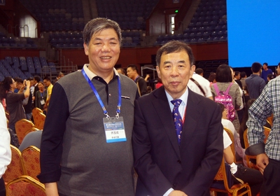 乔玉成教授参加墙报交流与《体育科学》主编田野教授合影