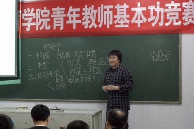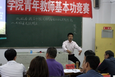 5月9日晚7点,在11教室举办了公司青年教师教学基本功竞赛,经过各系部初赛,青年教师王晓彤、高贯发、皇甫立慧、李恒、李夏元五位老师参加了此次竞赛。本次青年教师基本功比赛由李吉慧教授、杨海龙副教授、陈乐琴副教授、吴峰山副教授、张伟副教授、权黎明副教授、闫艾萍副教授七位老师担任评委,教务科科长冯瑞主持,公司党委书记李学刚,副经理王彤出席旁听。