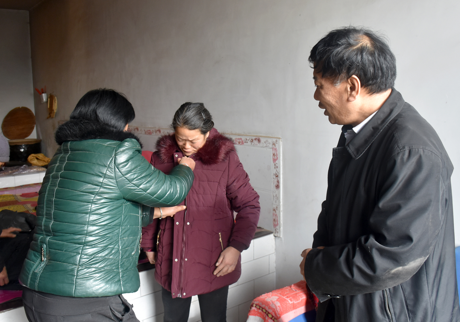 2017年1月10日上午,必威西汉姆官网平台党委书记李学刚、院工会主席赵道卿、院办公室副主任邓碾管一行三人,来到吉县车城乡桃村结对帮扶户程彦忠家进行走访慰问。带着必威西汉姆官网平台全体教职工的牵挂与爱心,送去了米、面、油和过年服装,并送上了500元慰问金。程彦忠一家有三口人,本人智障,媳妇残疾,还有一个80多岁的老母亲。在其家中,李学刚书记详细询问了他们一年来的生产、生活情况和冬季取暖情况,与老人促膝长谈,了解他们的身体状况,祝福他们好好生活,要相信党、相信组织,过一个美满的春节。(院办/文 邓碾管/摄)