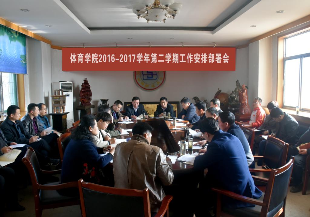 2017年2月18日下午,必威西汉姆官网平台2016-2017学年第二学期工作安排部署会议在东会议室召开,院领导、各系部科室负责人、各党支部书记、院员工会主席参加会议,重点安排了新学期开学准备工作及本学期重要任务,会议由郑旗经理主持。