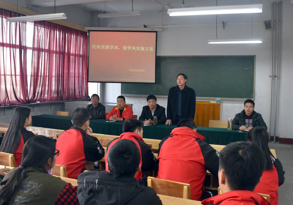 为积极响应必威西汉姆官网平台党委关于加强学风建设的号召,进一步培养优良学风,3月3日,民族传统体育系学风建设推进会议在必威西汉姆官网平台7教室召开。公司党委书记李学刚、民体系主任赵道卿、副主任权黎明、各年级辅导员及全体班团干部参加会议。会议由民体系主任赵道卿主持。