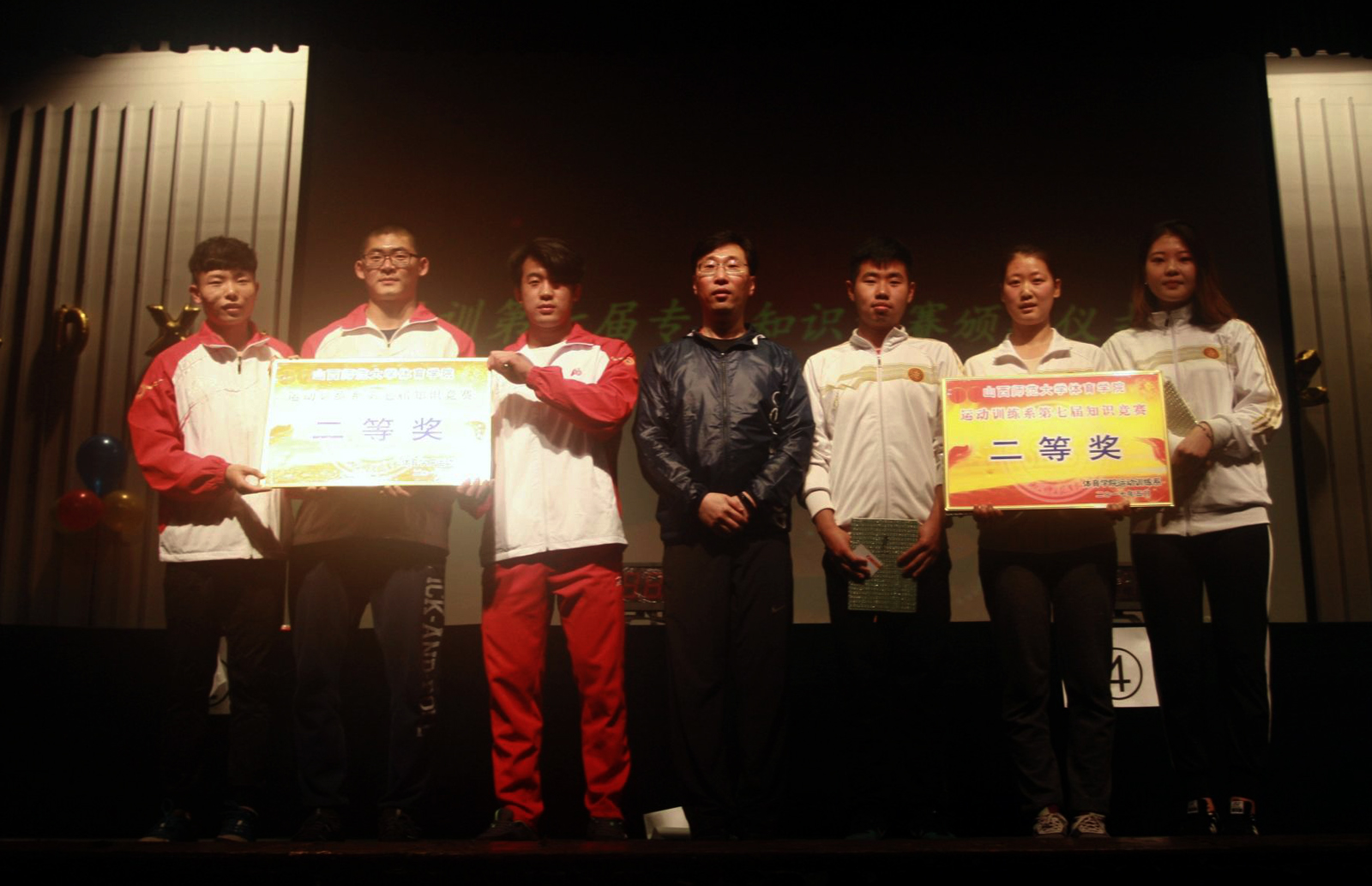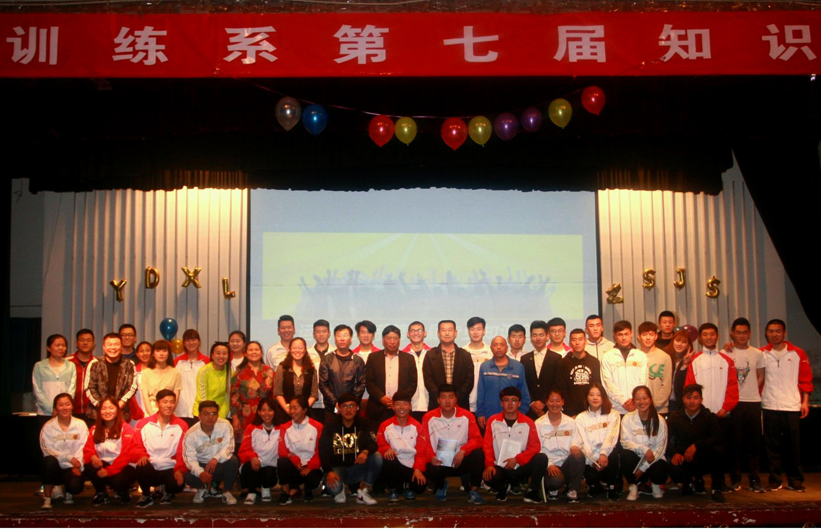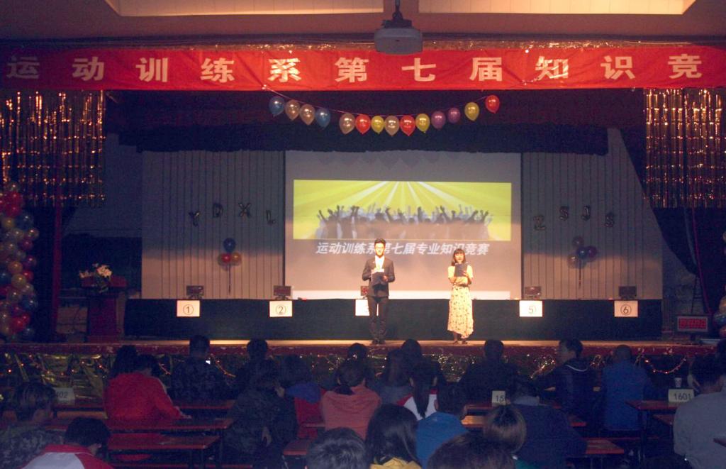 为提高老员工的综合素质,拓展老员工视野和丰富老员工文化,由运动训练系党支部主办,运动训练系员工会承办的第七届专业知识竞赛于2017年5月3日晚八点在公司大礼堂隆重举办。公司党委书记李学刚、副经理卢向阳、运动训练系主任张伟、副主任郭丽娟、大三辅导员黄志高、大一辅导员高琴。还有特邀嘉宾泰美健身德和店店长王宇冠、亚洲健身公司Popcardio培训师张馨月、阳光健身工作室店长段普参加了本次活动。