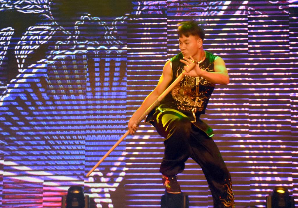 第二篇章“社会武术——武之风”中,霍州《八蜡(cha)庙》战鼓表演锣鼓齐鸣如春雷滚动,万马奔腾,气势磅礴,威武雄壮,充分地展现了我国北方民族之粗犷,剽悍,倔强,豪放的精神风貌;《洪洞通背拳》演时起伏翻江海,波澜壮阔会风云;重如泰山轻如云,劲功撼山玄通神;表演者进手而缠,随式而绕,侧身而入,闪惊巧取。洪洞通背拳是中华武林宝库中宝贵的文化遗产之一,洪洞县自古练武之风兴盛,有“中国武术之乡”美誉,县城里武馆林立,村村有人练拳,古风盎然。《洪洞通背拳》的表演者年龄最长者已是耄耋之年,年龄最小者才至垂髫,他们的表演展示了临汾市深厚的武术文化底蕴和广泛的群众武术基础。