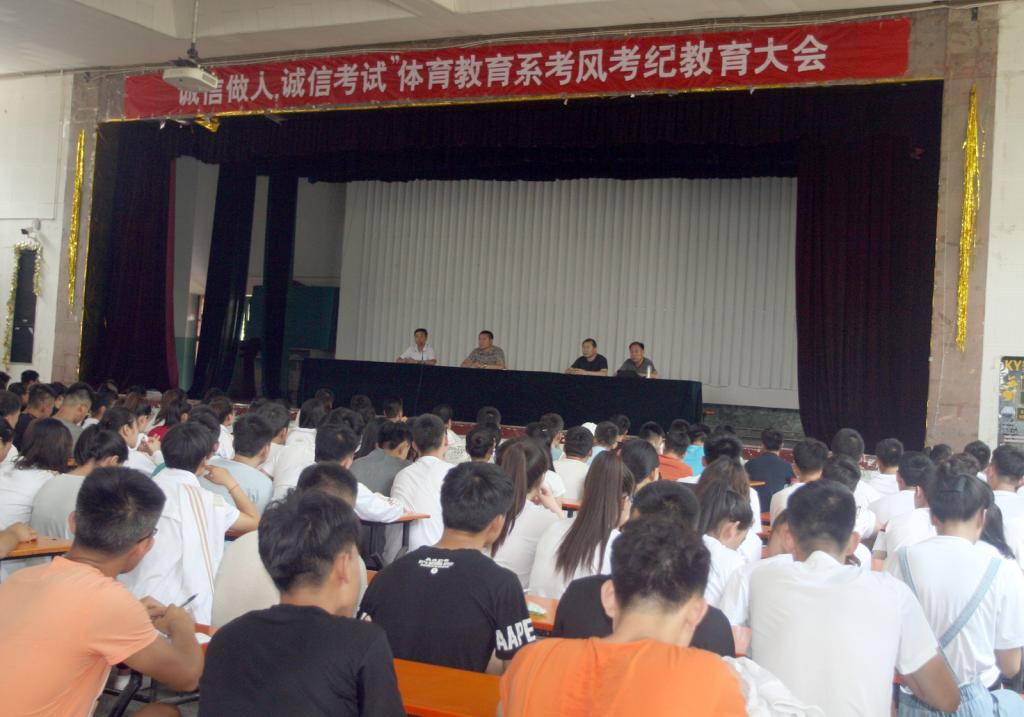 6月27日下午3点,“诚信做人,诚信考试”体育教育系考风考纪教育大会在大礼堂如期召开。系主任杨海龙,系副主任张杰以及各班辅导员老师参加了会议。