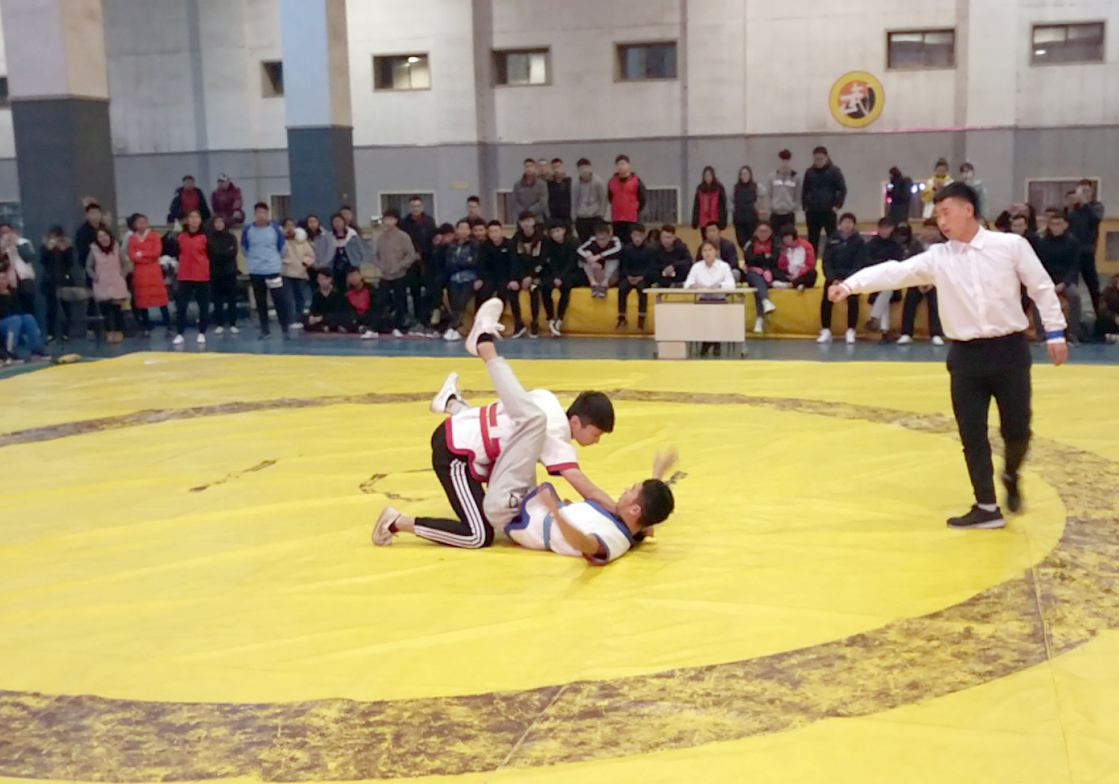 在男子跤65kg级冠亚军争夺赛中,选手张伯超迅猛敏捷,干净利落,顺势拉大比分,拔得头筹。而女子组48kg比赛则陷入了白热化状态,比分时而胶着咬合,时而差距稍大,带动着赛场气氛跌宕起伏,选手每一次精彩的摔法,都将比赛气氛一次次推向高潮。整个赛程紧张激烈、秩序井然,观众热情高涨、群情激昂。比赛在欢呼声中落下了帷幕。