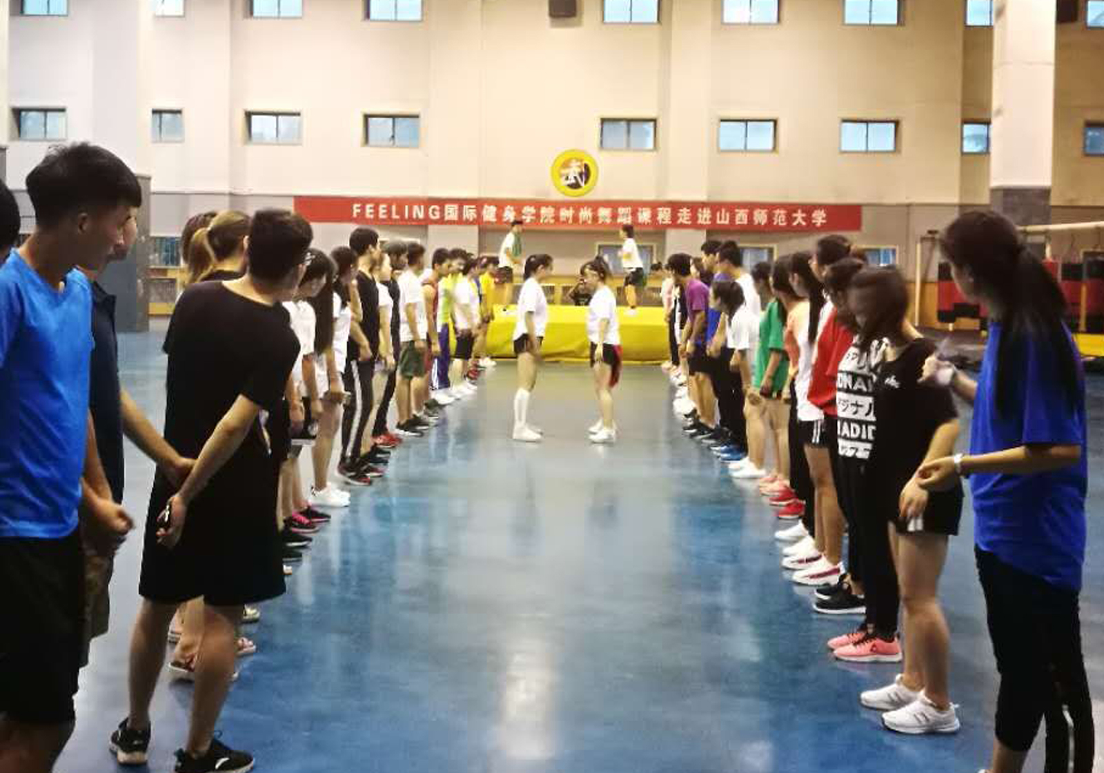 随后,运动训练系主任张伟教授就FEELING国际健身公司做了简单介绍。运动训练系王红芳老师也应邀到现场参与了活动的组织。