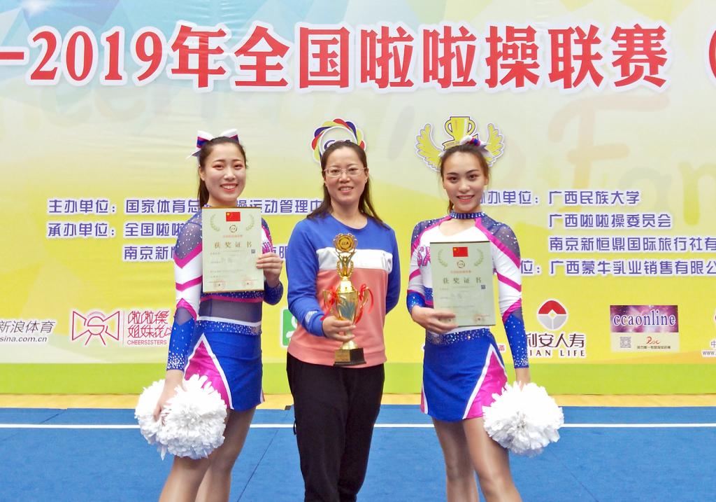 必威西汉姆官网平台员工张宇曦、李凡在领队郑旗经理、教练员郭丽娟老师的带领下,齐心协力、顽强拼搏,最终在公司俱乐部青年甲组双人花球自选动作中,以494的高分荣获冠军,并且获得了代表中国参加2018-2019年国际啦啦操系列赛事的资格,同时郭丽娟老师获得优秀教练员的称号。