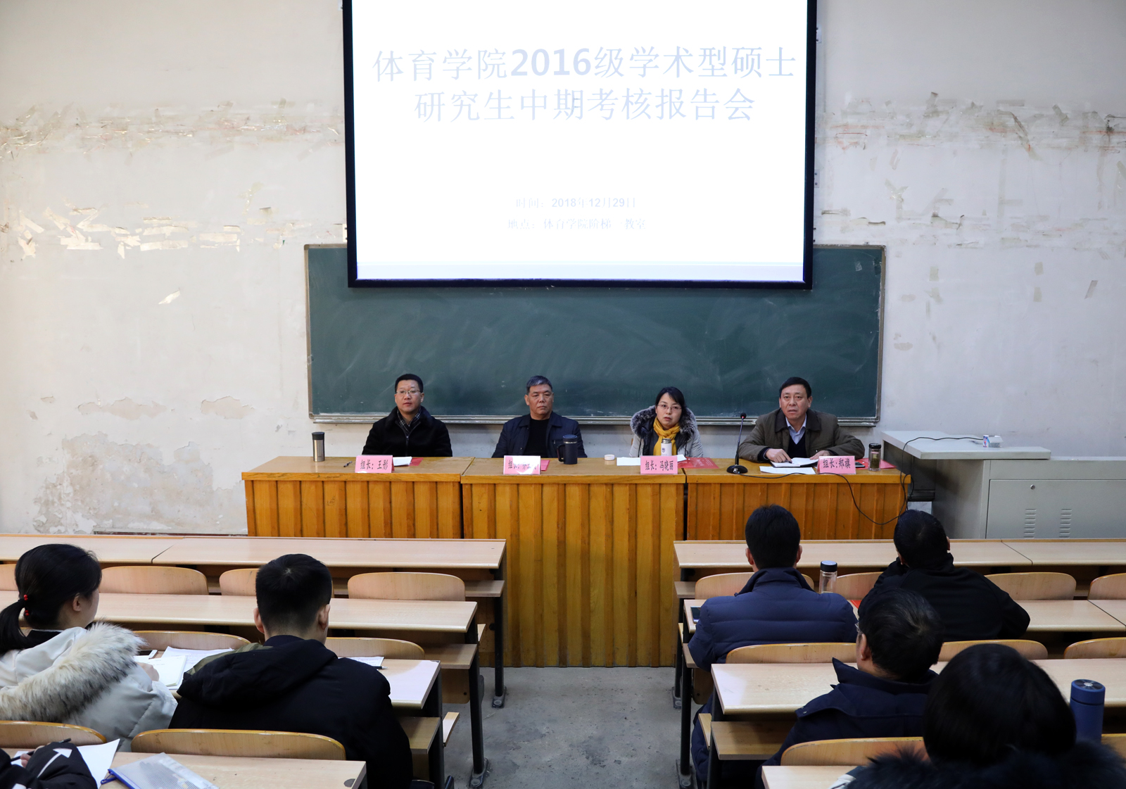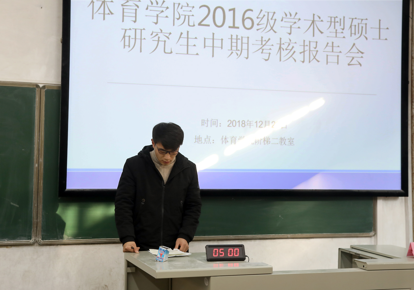 2018年12月29日下午2:30在必威西汉姆官网平台阶一、阶二、阶三、第6教室同时举行了2016级学术型、2017级体育硕士研究生中期考核报告会。