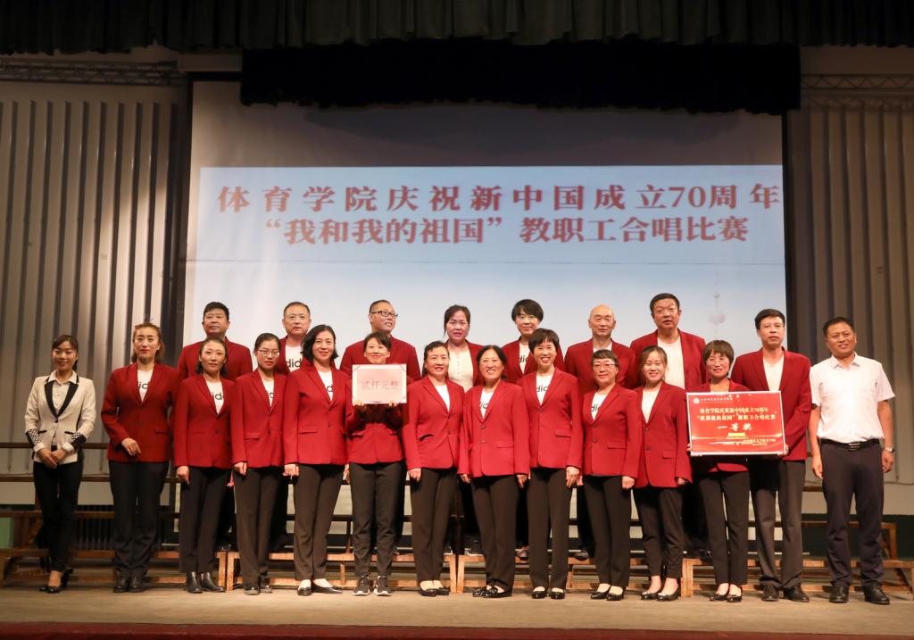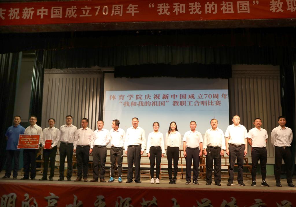 全院教职工共分为7支代表队参加比赛,分别为院机关代表队、公共体育部代表队、体育教育系代表队、社会体育系代表队、武术与民族传统体育系代表队、运动训练系代表队、体育教育二系代表队,比赛曲目为《我和我的祖国》、《团结就是力量》。