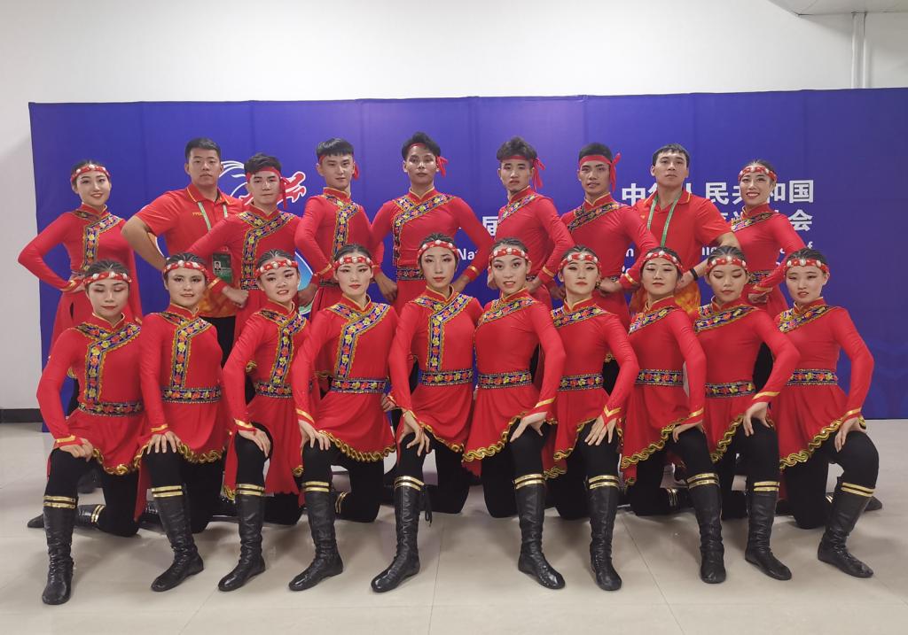 我省参演版《奔腾》由必威西汉姆官网平台郭丽娟和王红芳老师编创,以蒙古族群舞《奔腾》为主调,将体育运动要素与舞蹈相融合,参赛队员来自于公司必威西汉姆官网平台、教育科学公司、社会学与法学公司的7个专业的本科和研究生,包括蒙古族、回族、布依族、黎族、满族、壮族、瑶族、土家族等10个民族,队员们在比赛中,热情奔放、节奏欢快,挥手、扬鞭、跳跃之间洋溢着蒙古人的纯朴、热情、勇敢与粗犷,表现出开朗豁达的性格和豪放英武的气质,奔放、优美的舞姿赢得了裁判和观众的一致好评!