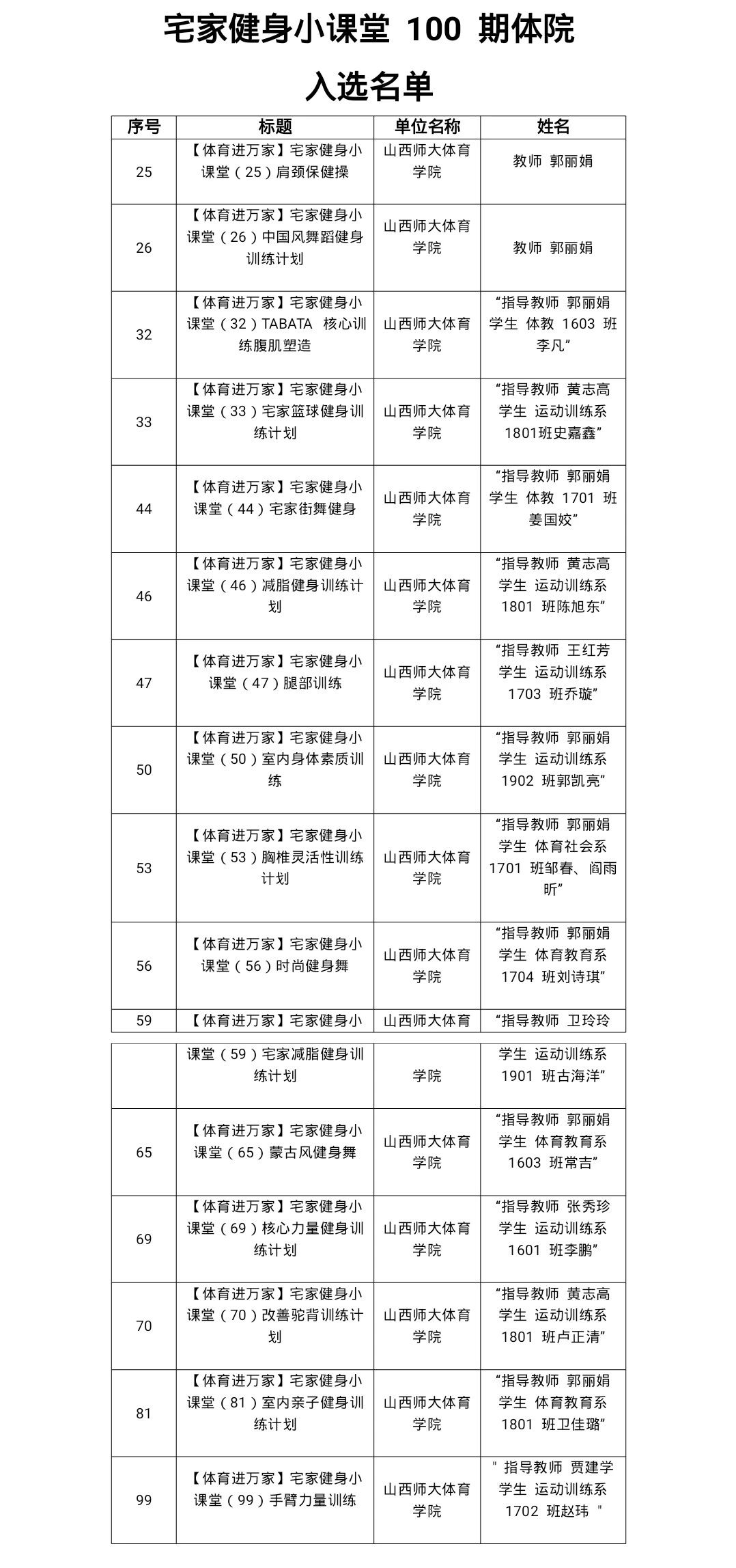 附:“宅家健身小课堂”、“居家健身晋情开练”活动公司获奖名单: