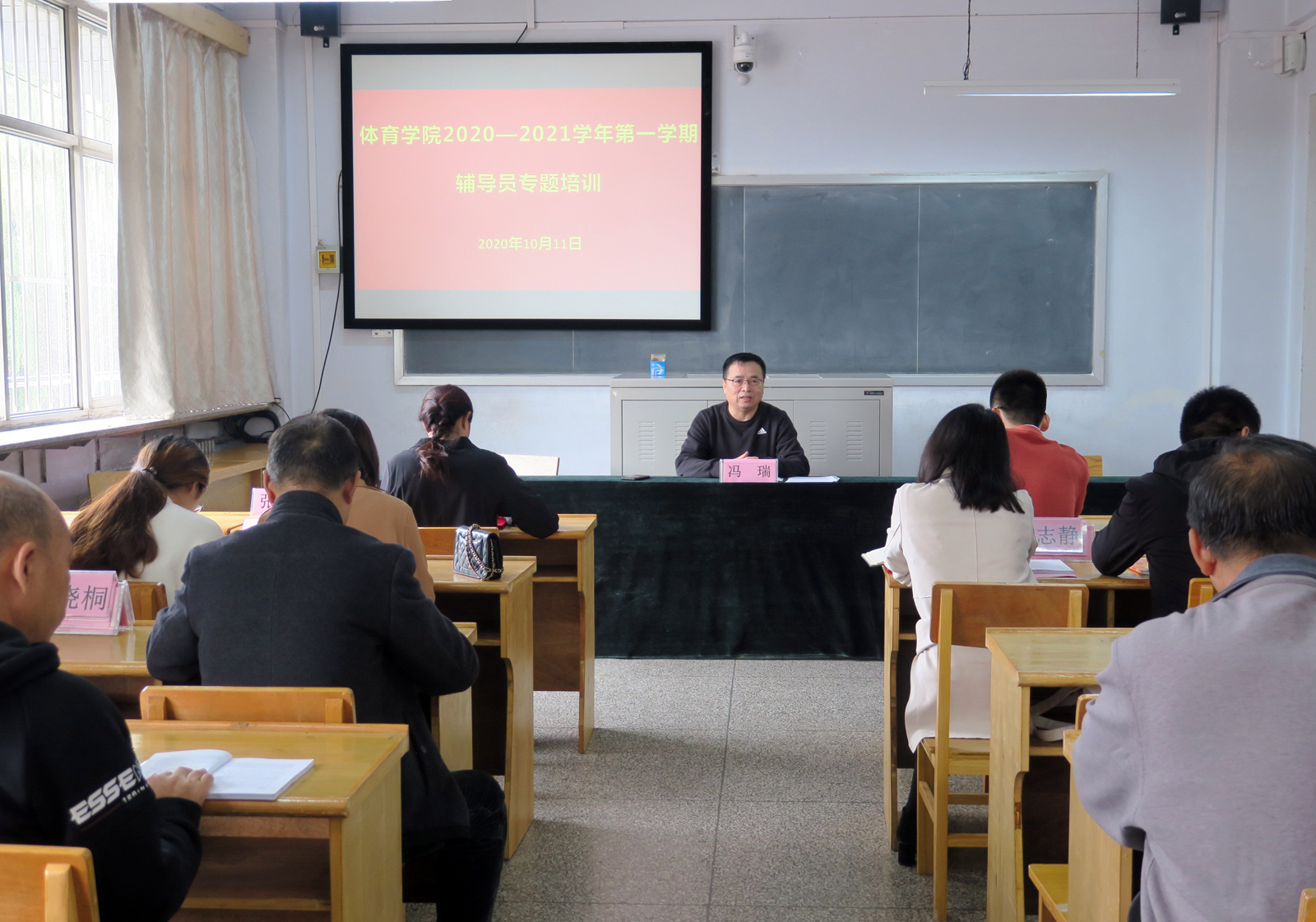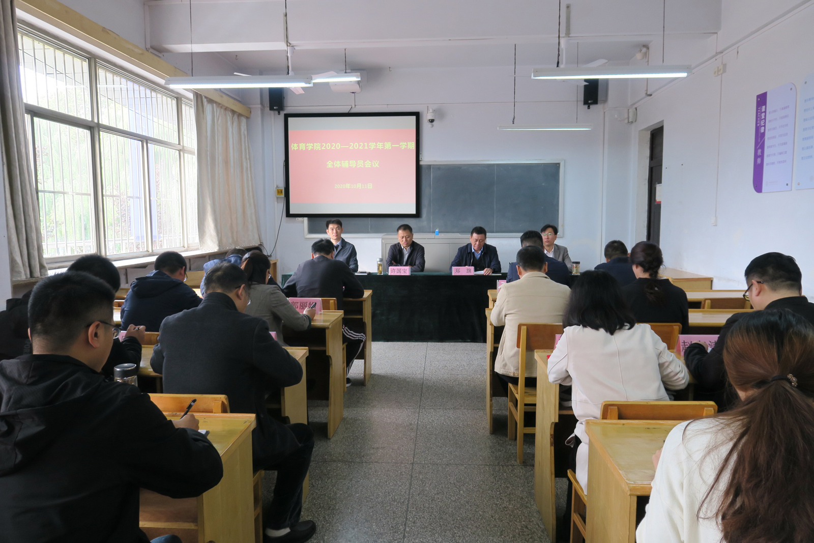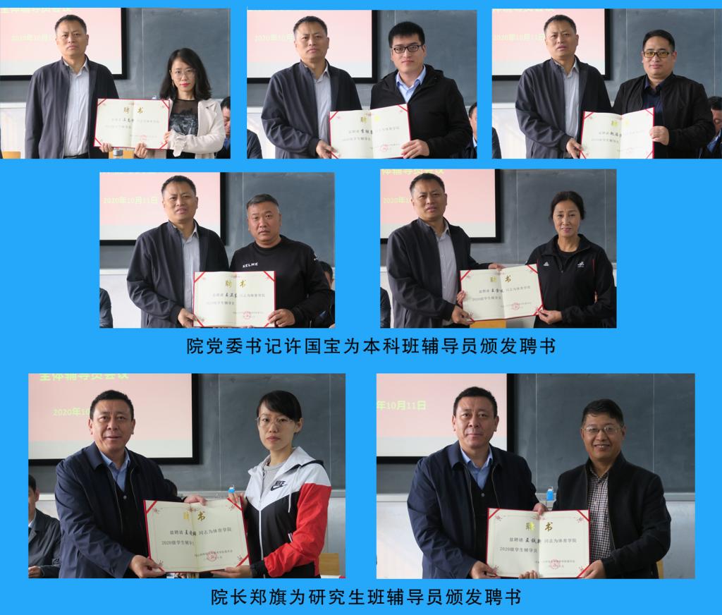 10月11日上午,公司在六教室召开2020-2021学年第一学期全体辅导员会议,公司党委书记许国宝、经理郑旗、公司党委副书记张大为、副经理张伟和各系、科室负责人及全体辅导员参加了会议。会议由公司党委副书记张大为主持,许国宝和郑旗分别向本科生辅导员和研究生辅导员颁发了聘书。