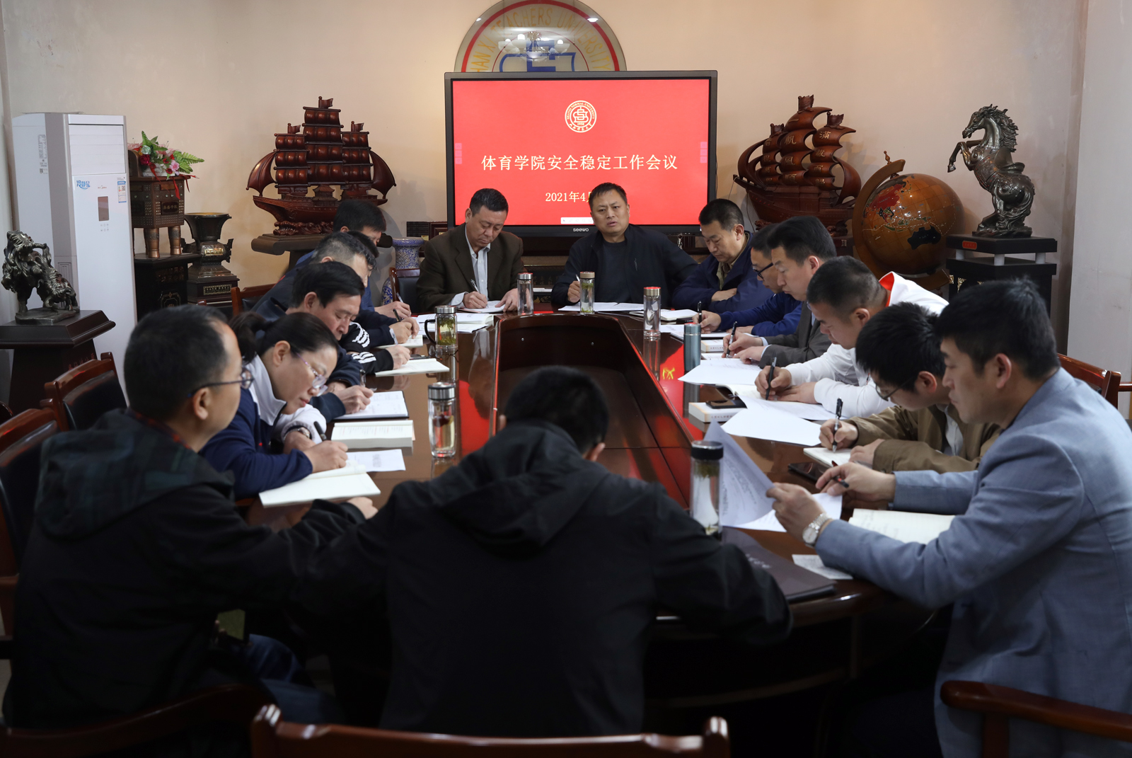 4月26日上午,公司近期安排部署会议在东会议室召开,院领导、院工会及各系部科室委负责人、党支部书记参加会议。会议由公司党委书记许国宝主持。