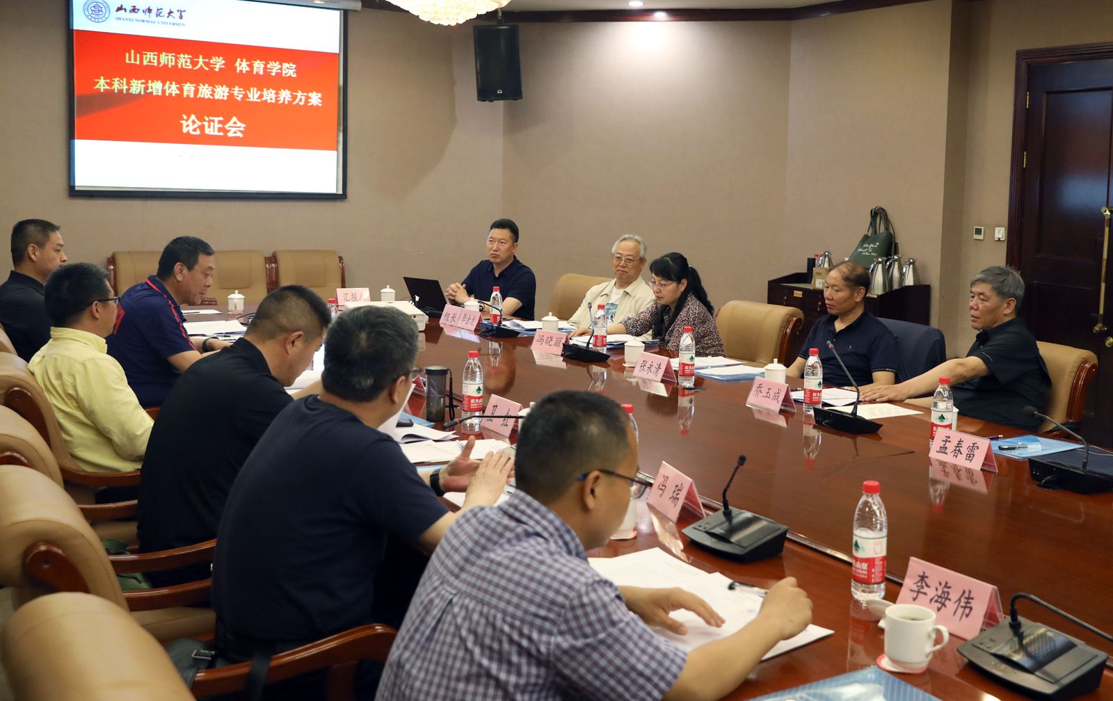 5月14日下午,公司召开了本科新增体育旅游专业培养方案专家论证会。论证专家组组长由山西大学博士生导师李金龙教授担任,成员有华南师范公司博士生导师宋亨国教授、中央民族大学博士生导师侯会生教授、校学术委员会副主任张永清教授、历史与旅游文化公司旅游管理系主任卫红博士、《体育研究与教育》主编乔玉成教授、校研究生院副经理冯晓丽教授、教务科科长冯瑞副教授,论证会由经理郑旗主持。