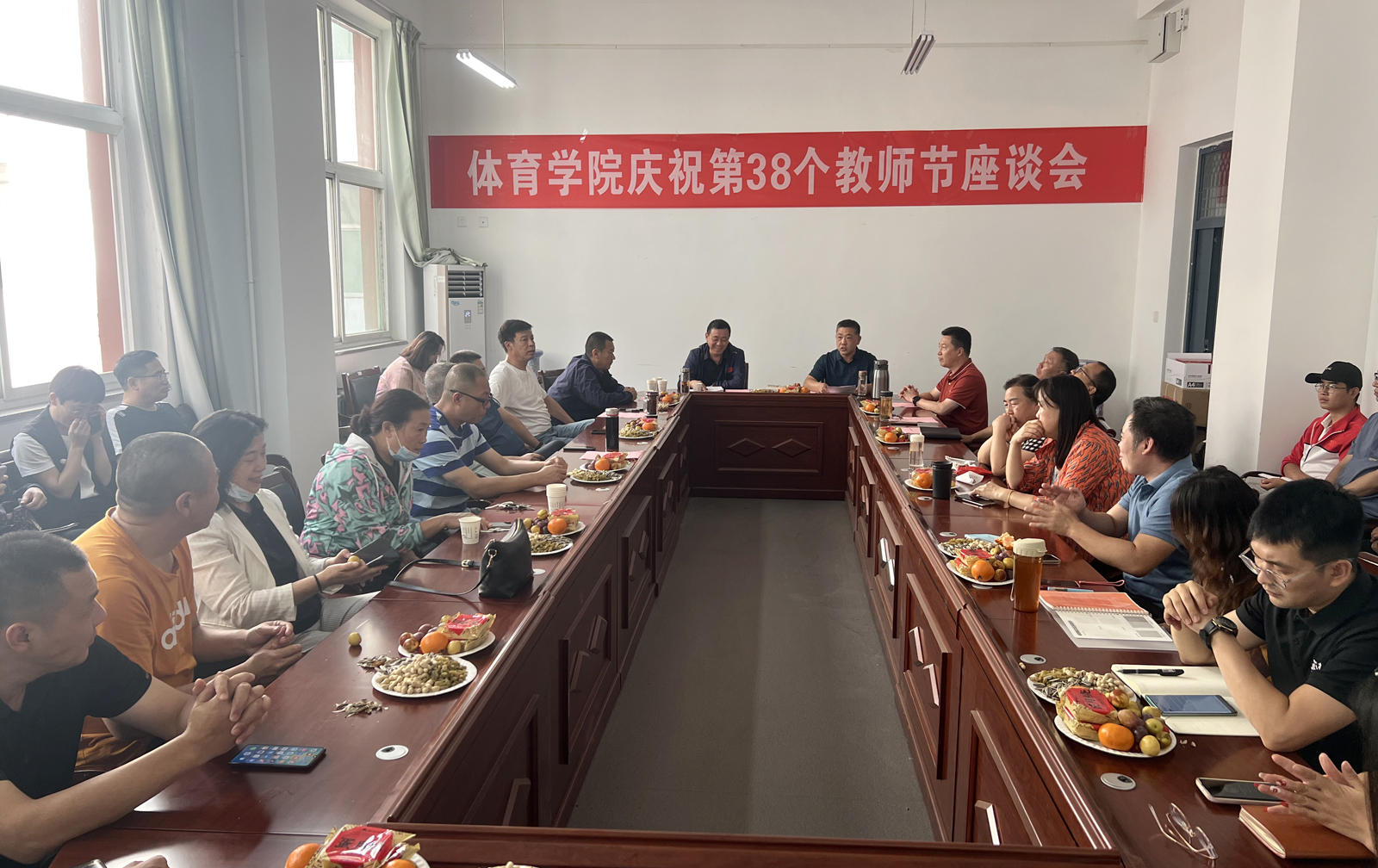 9月7日下午3时,公司庆祝第38个教师节座谈会在二层东会议室召开,院领导、部分教职工代表以及辅导员参加座谈。会议由公司党委书记卫建平主持。