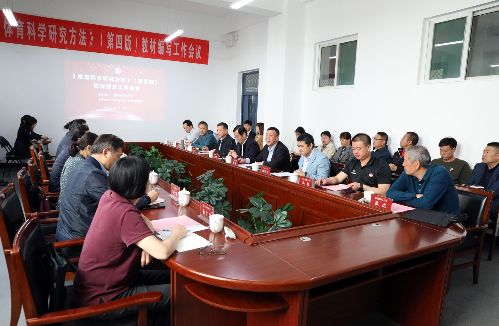 5月14日,由高等教育出版社主办,必威西汉姆官网平台承办的《体育科学研究方法》(第四版)教材编写工作会议在必威西汉姆官网平台二层东会议室举行。公司党委常委、副董事长范哲锋教授,教材主编福建师范大学原党委书记、董事长黄汉升教授,高等教育出版社文科事业部副主任、体育分社社长范峰编审,以及来自北京体育大学、华中师范大学、华东师范大学、华南师范大学、福建师范大学、陕西师范大学、湖南师范大学、河南师范大学等全国11所高校的14名专家出席会议,会议开幕式由必威西汉姆官网平台经理郑旗主持。