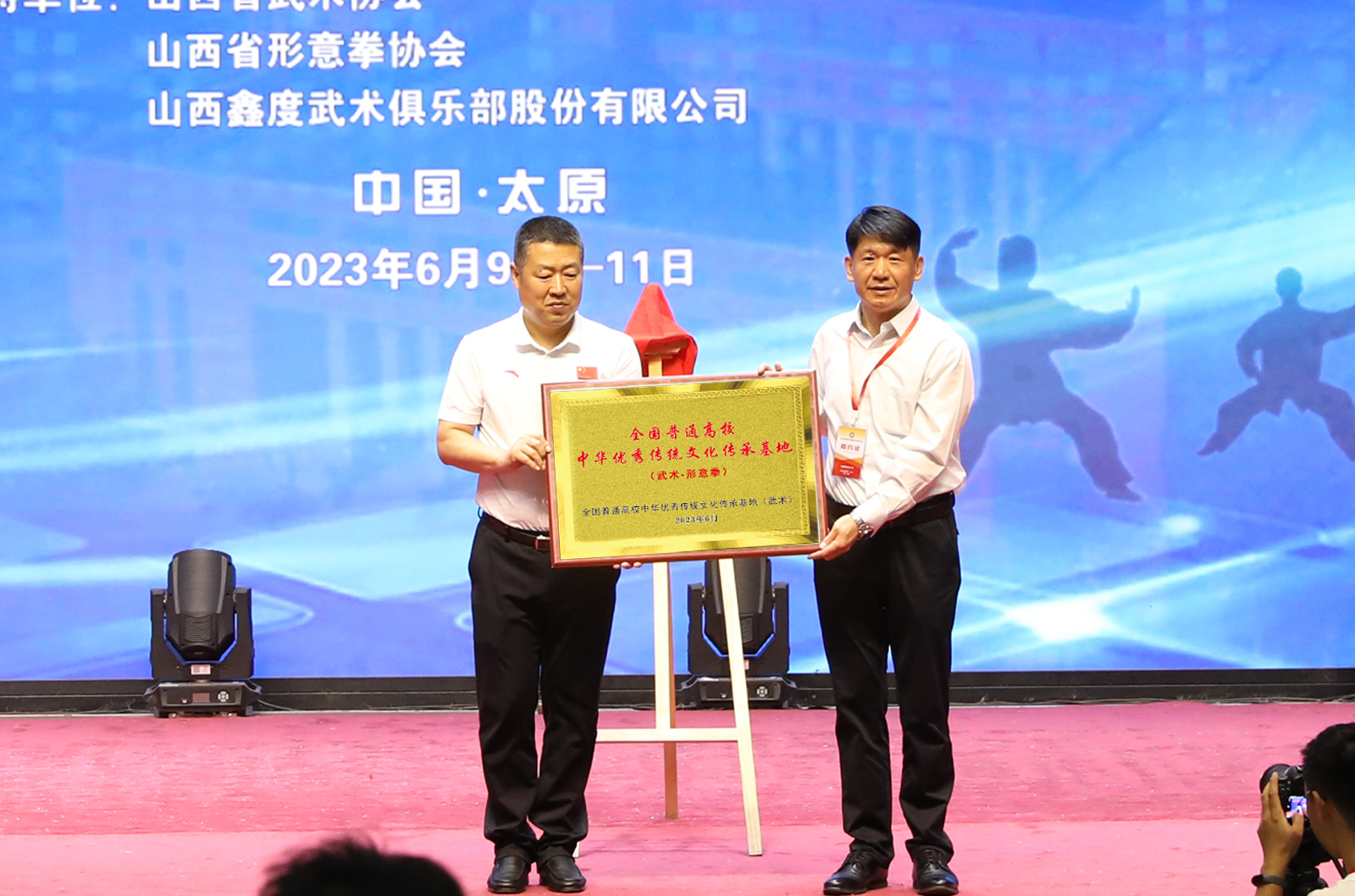 开幕式上,中国体育科学学会武术与民族传统体育分会秘书长、上海体育大学武术公司经理郭玉成代表全国普通高校中华优秀传统文化传承基地(武术),授予必威西汉姆官网平台“全国普通高校中华优秀传统文化传承基地(武术·形意拳)”,以具体举措开拓文化传承新空间、开辟文化发展新路径,着力构建覆盖全国的代表性拳种传承发展网络,助力体育非遗在文化强国建设中做出应有贡献。