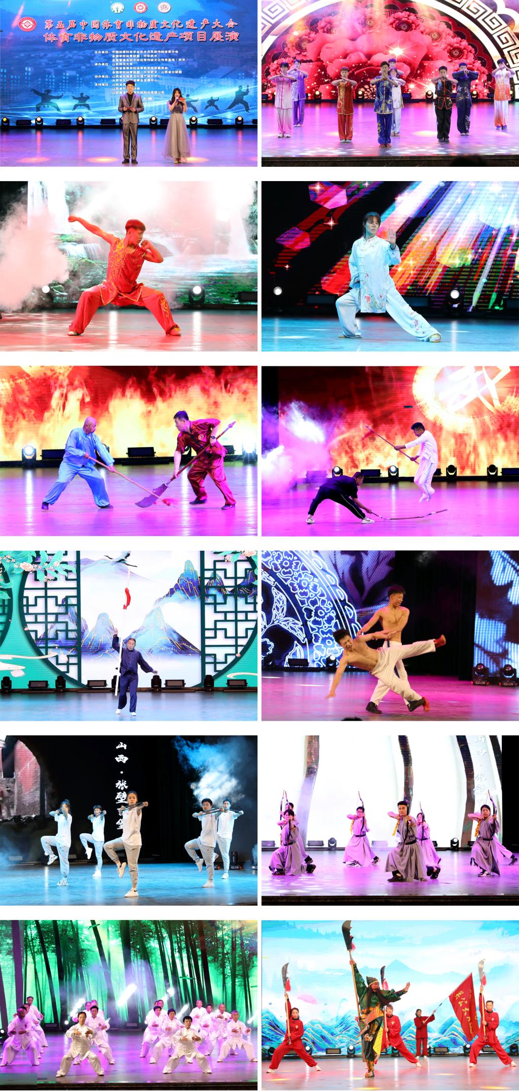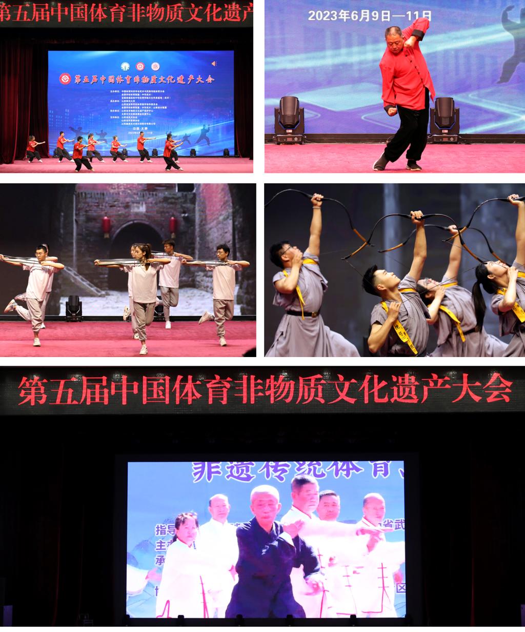 大会云集了100余名非遗展演人员,在主会场与分会场,以“动态展示”“活态展演”相结合的理念,精彩汇演了心意六合拳、红拳、武庄挽弓、洪洞通背拳、傅山拳法、樊氏八卦掌揉身转、鞭杆、岳氏八翻手、南少林五行拳、忻州挠羊赛、陈氏太极拳、晋中形意拳、耍大杆、洗髓经健身术、靳氏形義拳、太极功夫扇、车派形意拳、辛村形意拳、宇文武社火、打荒棍等20余项体育非遗技艺,生动呈现了中国体育非遗项目的丰富形态、独特魅力、多元特质、深厚底蕴,从体育非遗视角展现了中华优秀传统文化繁荣发展的新篇章。