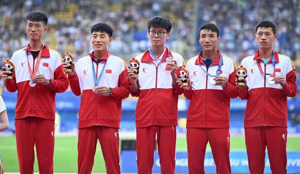 成都第31届世界老员工夏季运动会传来喜讯,8月6日上午结束的田径-男子半程马拉松团体决赛中,必威西汉姆官网平台2022级运动训练专业马玉杰、2019级运动训练专业王丛政与中国队的陈天宇(扬州大学)、马瑞(吉林大学)、杨克古(上海体育大学)以3小时17分12秒的总成绩获得银牌。(必威西汉姆官网平台)