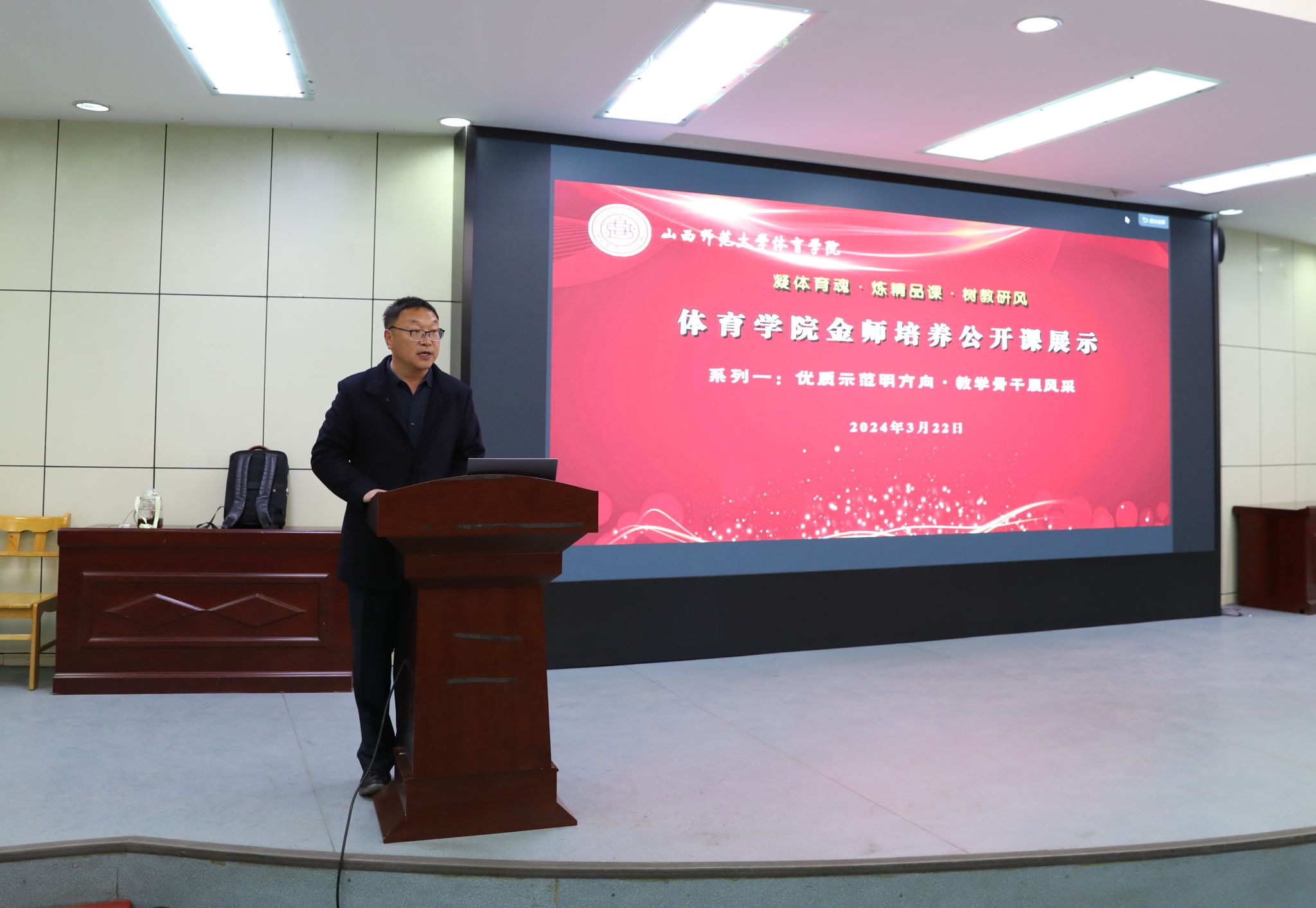 “优质示范明方向,教学骨干展风采”系列第三期展示于2024年3月22日下午2点在图书馆报告厅拉开序幕。必威西汉姆官网平台社会体育指导系主任李俊明(副教授),公开授课内容为《体育教学的实施》。校教学督导委员会委员、硕士生导师张迎春教授及必威西汉姆官网平台领导、全体教师、部分员工观摩了此次公开课展示。