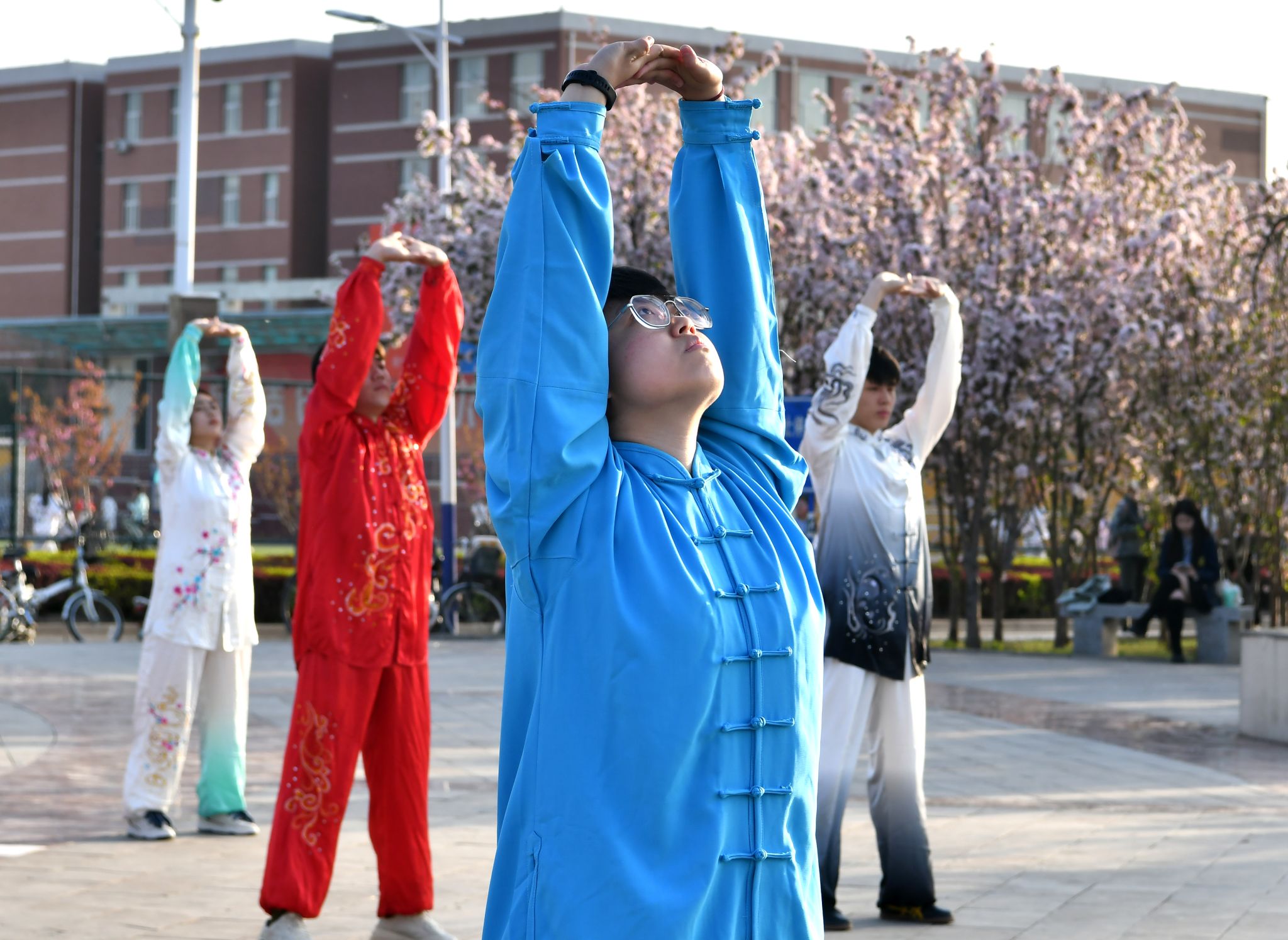 春风拂面,碧波荡漾。在美丽的毓秀湖畔,伴随着悠扬舒缓的音乐,行知社区必威西汉姆官网平台的同学们气定神闲地舒展肢体,通过形体运动与神、意、气的配合,动作优美、整齐划一的展示八段锦的神韵与内涵。