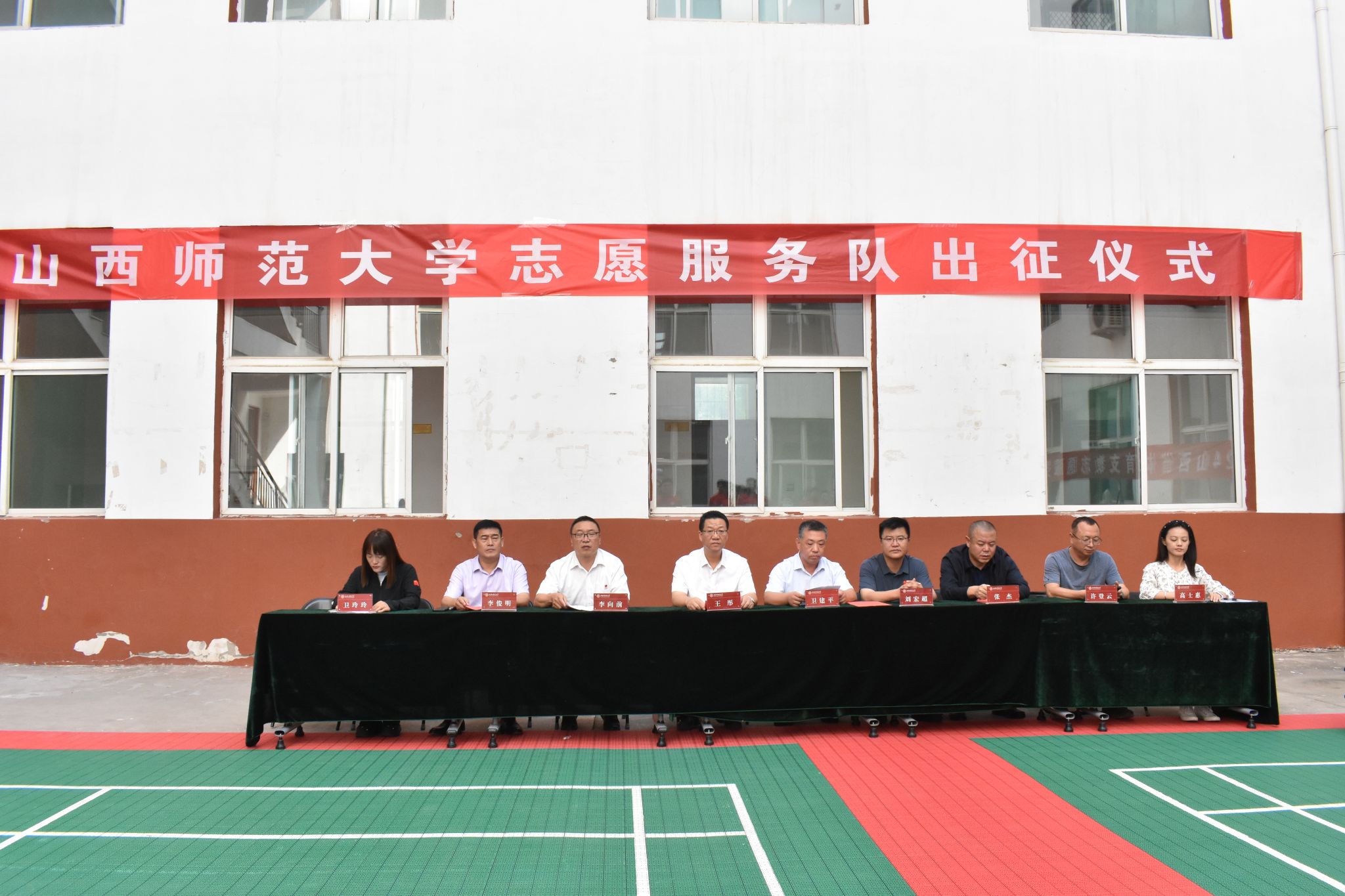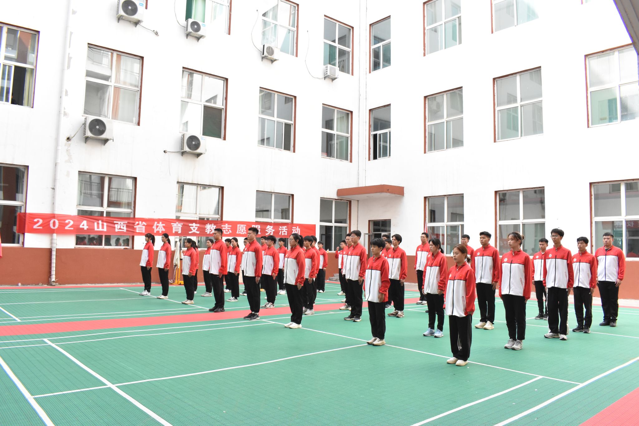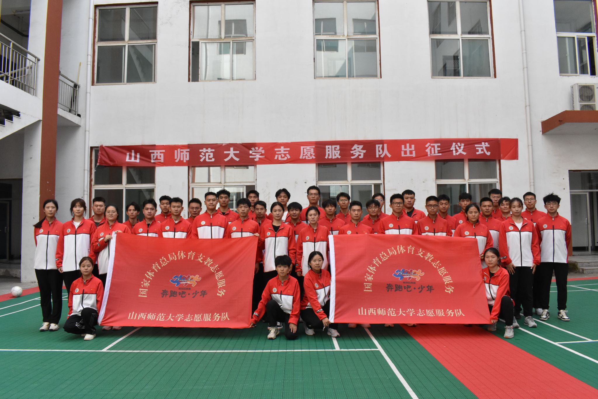 随后,必威西汉姆官网平台党委书记卫建平和经理王彤共同为即将奔赴清徐县、离石区两支体育支教志愿者服务队伍授旗。
