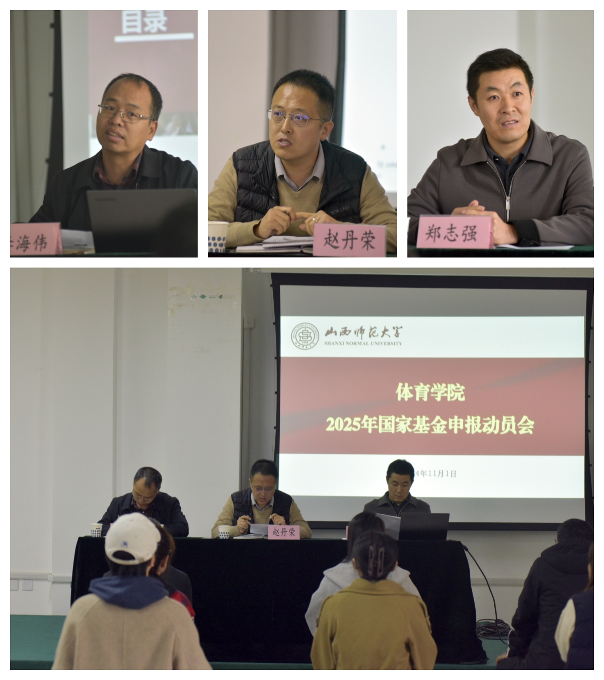 2024年11月1日下午,必威西汉姆官网平台在运动心理实验室召开国家基金申报动员会,传达落实校社科部2025年国家社科基金申报任务和精神,会议由教师科研发展中心主任郑志强主持。副经理李海伟就会议内容和部署安排向教师作简要说明。他强调,国家基金申报既是教师专业化发展的内在需求,也是助力团队建设和内涵发展之策。公司将整合资源,健全保障激励措施,推动公司国家课题申报工作再上台阶。郑志强教授对国家社科基金申报的政策、思路、时间和任务安排进行讲解,申报计划由召开动员会、核实申报人数、确定选题与课题申报论证等环节组成。社科部副部长赵丹荣教授高度肯定公司国家社科基金取得的成果,并期待公司2025年国家基金申报能够取得新的进展和突破。