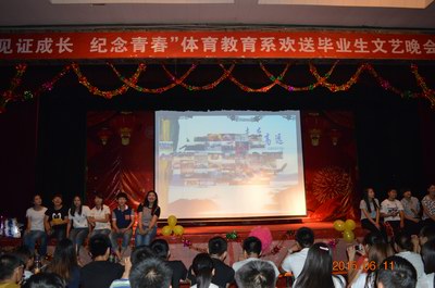 2015年6月11日晚七点半,由体育教育系党支部主办,团总支、员工会承办的“见证成长纪念青春”体育教育系欢送毕业生文艺晚会在大礼堂隆重举行。公司党委书记李学刚、经理郑旗、公司党委副书记段东升、体育教育系主任杨海龙、副主任张杰、辅导员刘林、郑志强观看了文艺表演。