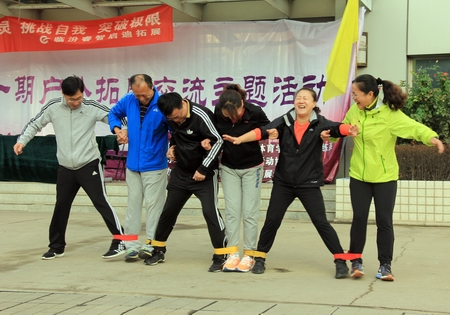 公司党委副书记段东升、副经理卢向阳、运动训练系主任张伟、副主任郭丽娟、教务科科长冯瑞、场管科科长高琴、以及朱新生、张秀珍、王红芳、龙勋等多位老师莅临参加了本次活动。活动经历个三个小时的时间,虽然天气偏冷,可参与活动的同学们热情高涨,积极参与,每个人都听从拓展师的安排,认真完成每一个“任务”。项目“同心鼓”有助于员工们齐心协力,攻克难关;跳绳比赛有助于增进团结,强健体魄;“蛟龙出海,”是培训团队的通力合作。通过活动的开展,使每个同学认识到整体绩效的提升是建立在每个个体基础之上的,所以个体能力、素质和与他人协调配合是完成团队任务的关键。