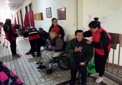 同学们事先分工明确,在路东敬老院开展了多项青年志愿者服务活动,有的同学与老人谈心交流,有的同学给老人们梳头、穿鞋,有的同学帮助工作人员打扫卫生,有的同学推着或参扶着老人散步,等等。老人们的脸上不时地流露出幸福的笑容,活动结束时老人们恋恋不舍地拉住同学们的手挽留大家。