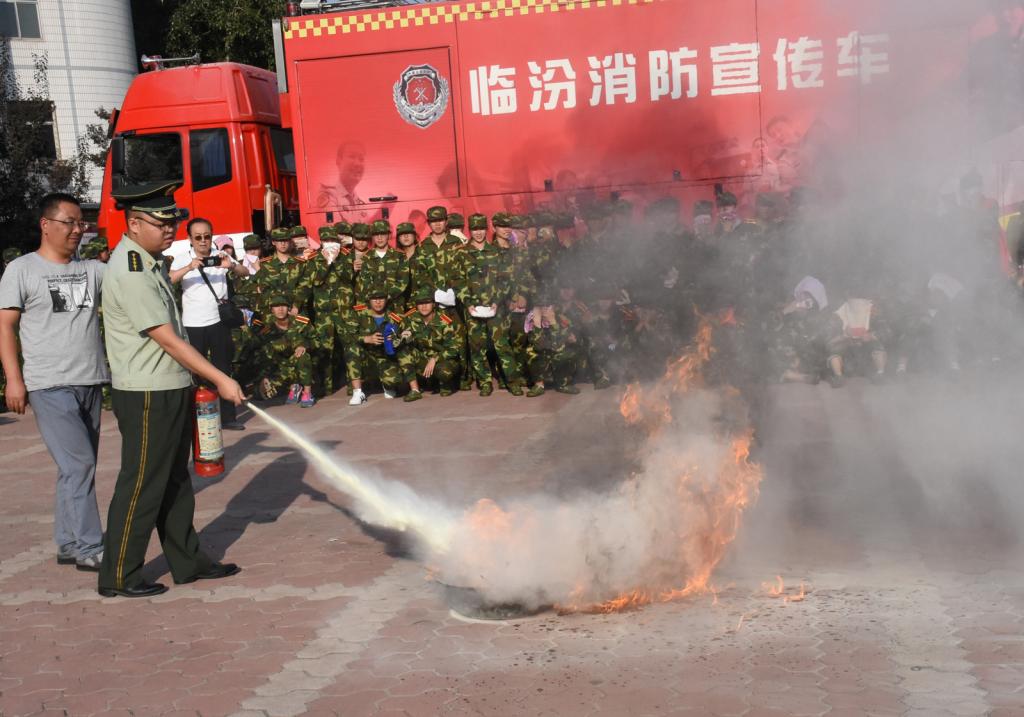 培训大会上,首先由临汾消防支队高级工程师邓全龙从消防法有关规定、火灾常识、消防器材的种类和使用方法、发生火灾后的应急措施四个方面进行了培训;他着重介绍了校园火灾事故高发的原因,并针对性作出解释,就校园火灾发生后大家应该如何开展自救等问题一一作答。之后,临汾消防支队组织2017级全体新生进行了应急疏散演练。随着一阵急促的哨声,消防疏散演练正式拉开序幕,假设公司教学楼起火,火势迅速蔓延,各班员工沿着楼道、楼梯,迅速通过各个安全出口,有序地离开了教学楼到达安全地带。在整个消防疏散演练中,员工们按照火场逃生疏散演练技巧,分别采用毛巾和衣角捂住口鼻弯腰低姿进行有序疏散,充分体现出了良好的消防安全意识。