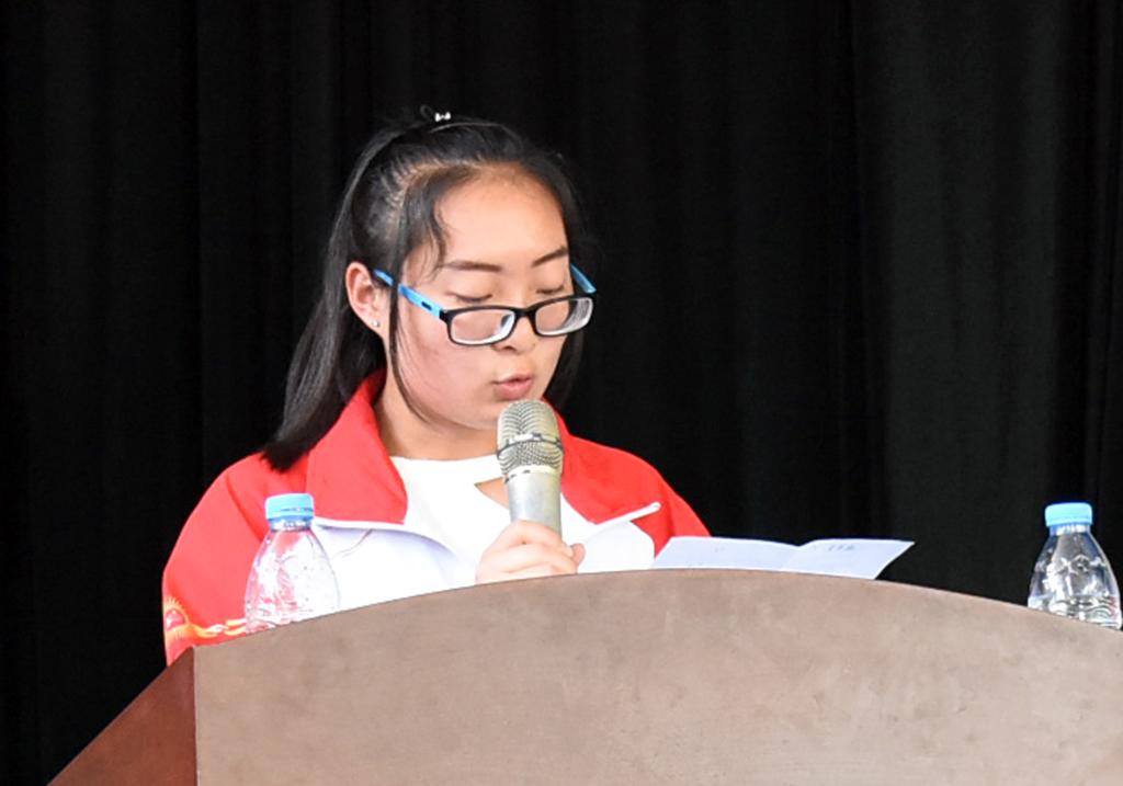 体教1701班的侯璇代表院级优秀团员发言