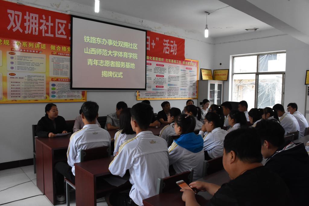 为推进必威西汉姆官网平台志愿服务常态化、机制化,深化校地交流合作,5月24日上午,在双拥社区党员活动室举行了铁路东办事处双拥社区必威西汉姆官网平台青年志愿者服务基地揭牌仪式,公司党委书记李学刚、铁路东办事处党工委副书记齐岩红、院团委副书记程祖浩、铁路东办事处双拥社区包片干部王雯凡、双拥社区党支部书记李建芳出席,双拥社区全体工作人员和必威西汉姆官网平台青年志愿者参加了本次基地揭牌仪式。
