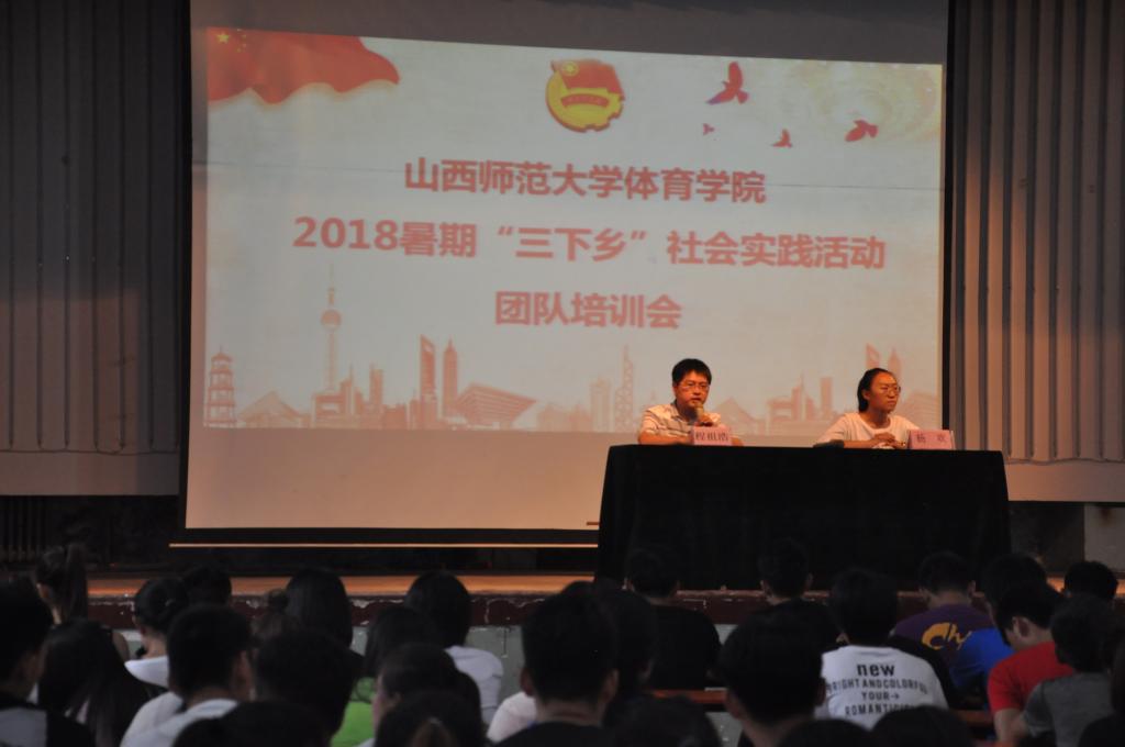 为扎实有效的开展暑期“三下乡”社会实践活动,7月2日中午13点,必威西汉姆官网平台于大礼堂举办2018年暑期“三下乡”社会实践活动培训会。院团委副书记程祖浩老师、团委副书记杨欢、以及44支校院两级实践团队共计350余名同学参加了本次培训会。