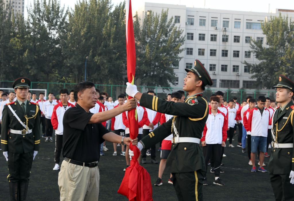 最后,公司党委副书记孙学虎老师讲话,他首先代表全体师生对圆满完成任务的第十二届国旗护卫队表示衷心的感谢,同时也希望第十三届国旗护卫队能够不忘初心、牢记使命、发扬传统、攻坚克难、顺利完成各项任务。他希望同学们能够在新的学期收拾心情、调整心态、整装待发、准备上课;规划学业、统筹兼顾、付诸行动、实现梦想。并且要求各系、各班加强安全教育,提高安全意识,防止受骗,增强基本逃生与自救能力;希望同学们树立诚信意识,加强学风考风建设,遵守考试纪律、诚信考试、诚信还贷、诚信做人。最后,他强调了本学期重要的学团活动,各系、各班严格按照公司要求,认真落实、担当尽责、主动作为,圆满完成各项任务。