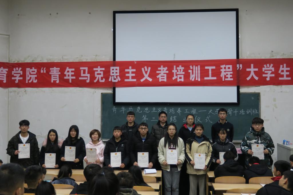12月20日晚上7:30,必威西汉姆官网平台青年马克思主义者培训班——老员工骨干培训班的结业仪式在阶一教室召开。院团委副书记程祖浩老师出席;院员工会副主席兼社团联合会主席武强、院员工会副主席孟春成以及全院120名团学骨干参加。本次会议由员工团委副书记杨欢主持。