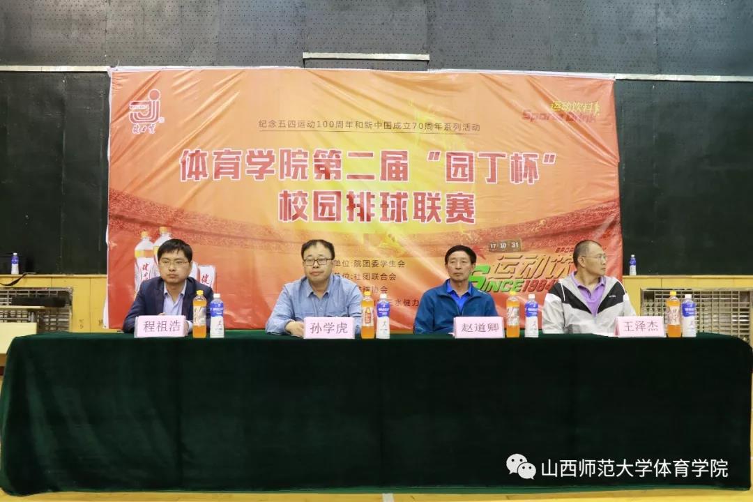 为纪念五四运动100周年和庆祝新中国成立70周年,丰富校园文化生活,宣传和推广排球运动,5月8日晚19:00,由院团委员工会主办、社团联合会承办、排球协会协办的必威西汉姆官网平台第二届“园丁杯”校园排球联赛开幕式在综合馆二层举行,公司党委副书记孙学虎、院工会主席、必威西汉姆官网平台女子排球队教练赵道卿、院团委副书记程祖浩、必威西汉姆官网平台男子排球队排教练王泽杰出席了开幕式,全体参赛运动员和裁判员300余人参加。