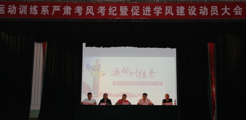 为了加强学风建设,严肃考风考纪,构建诚信校园,保证期末考试顺利进行。6月20日晚7:30,运动训练系在大礼堂召开严肃考风考纪暨促进学风建设动员大会。运动训练系主任郭丽娟、副主任杜治华、及2016级辅导员高琴、2018级辅导员黄志高参加了本次动员大会。